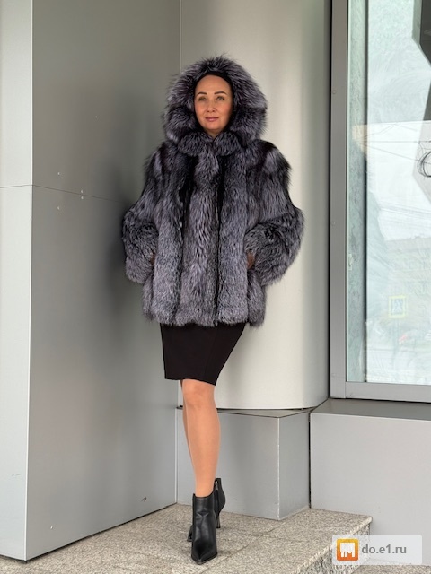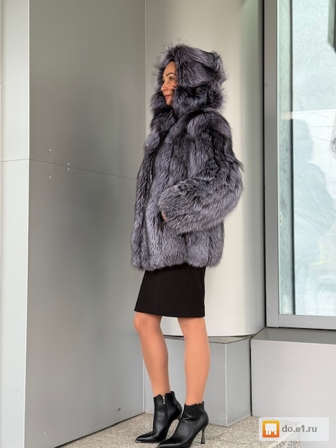 Шуба из чернобурой лисы с капюшоном