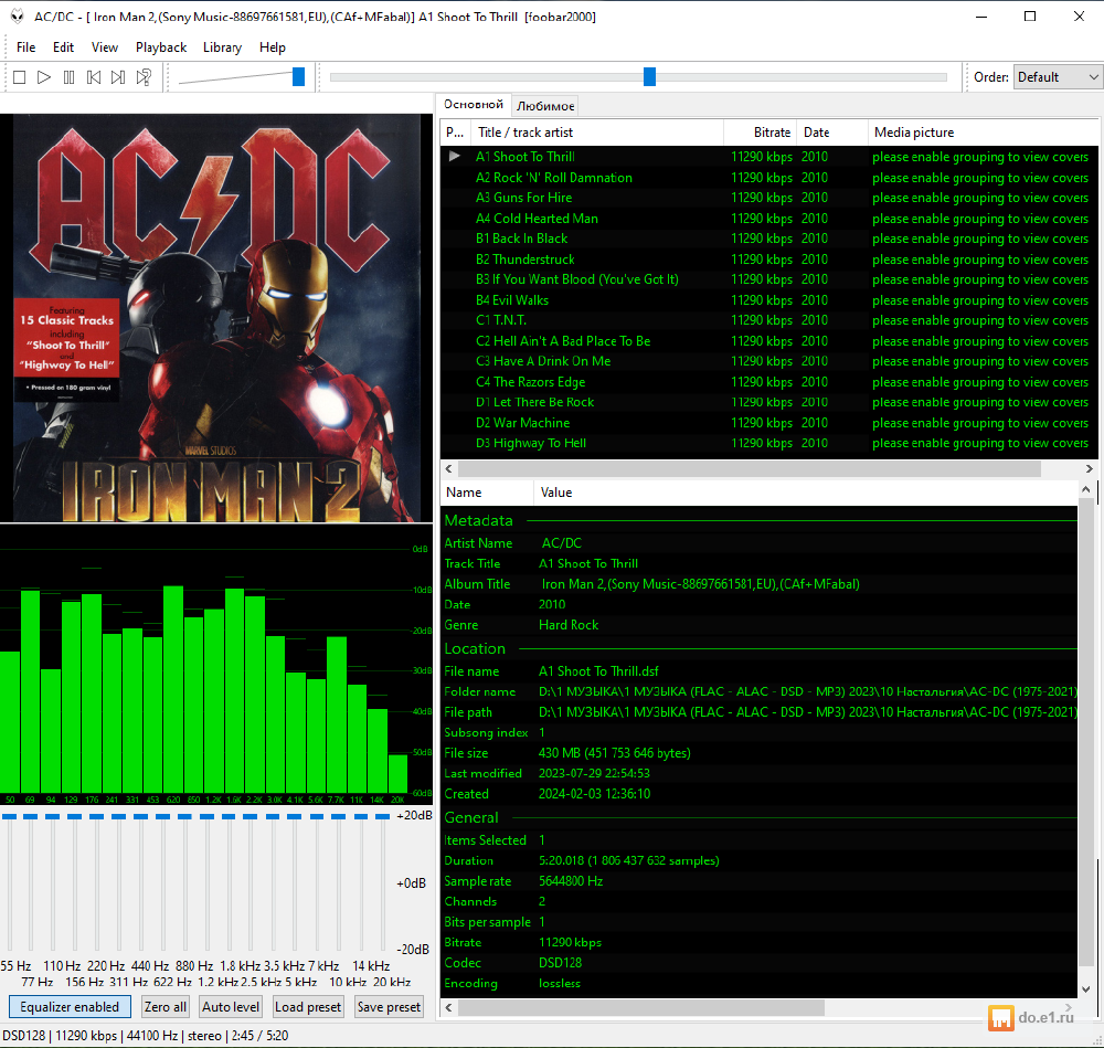 аудиоформаты - DSD, FLAC, ALAC, DTS, WAV от 11290 kbps до 850 kbps.
