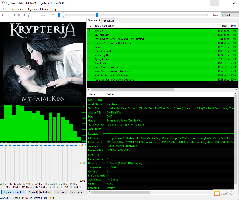 аудиоформаты - APE, AAC, МР3 от 320 kbps до 126 kbps (в основном 320 kbps).