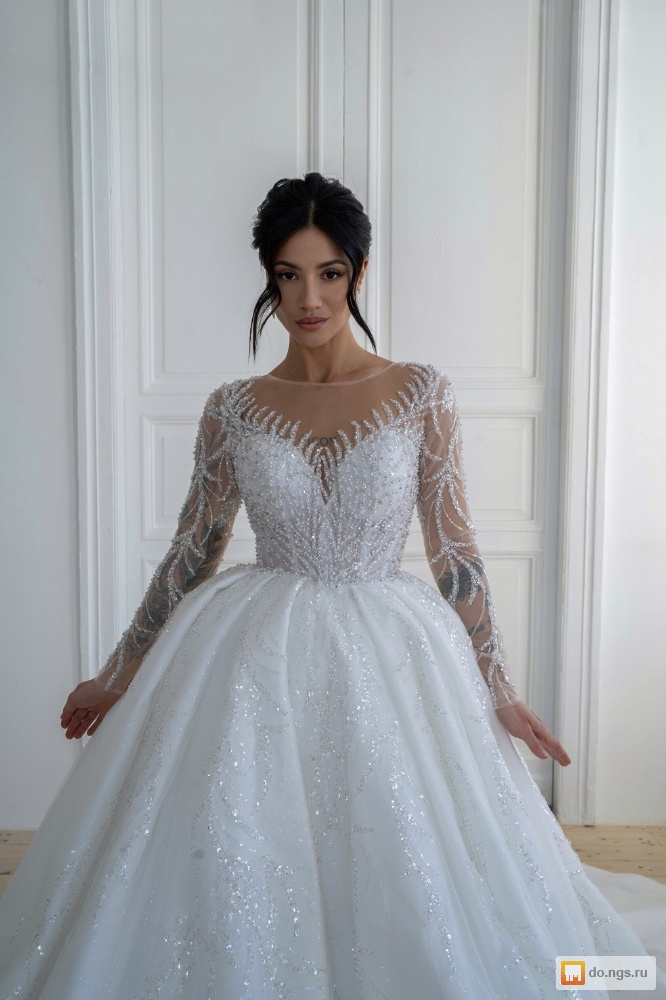 Королевское свадебное платье со шлейфом.